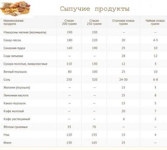 Используя эту таблицу, вы сможете легко измерить нужное количество продукта при приготовлении различных блюд или напитков