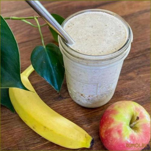 1. Бананово-яблочный смузи с овсянкой: Добавьте в блендер несколько столовых ложек овсяных хлопьев вместе с бананом, яблоком и молоком. Блендеруйте все до получения гладкой консистенции. Этот вариант смузи отлично насытит вас на долгое время.