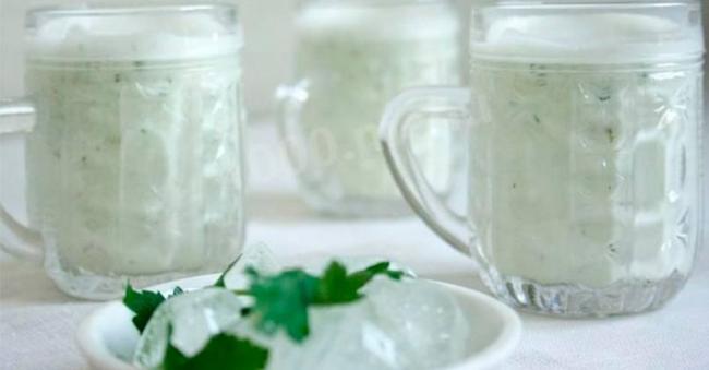 Вам понадобятся один стакан натурального йогурта, такое же количество воды и немного соли. Тщательно перемешайте ингредиенты с помощью миксера до образования пены, добавьте по желанию немного мяты и льда.