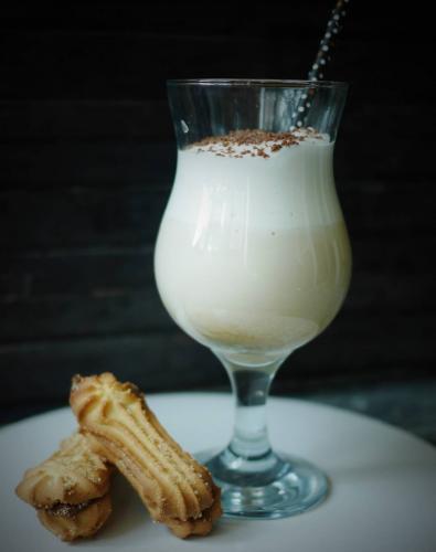 Так как напиток относится к десерту, его подают с трубочкой либо длинной десертной ложкой в высоком стакане из стекла.