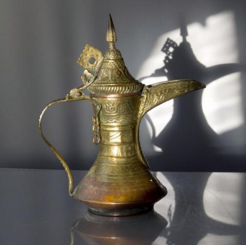 Впоследствии арабы создали специальный сосуд для приготовления кофе – даллу (от арабского dallah), представляющий собой медный или латунный кувшин с широким изогнутым носиком, прикреплённым в верхней части сосуда, с крышкой и ручкой, как и у ибрика. Чтобы не обжигать руки, ручку кувшина сделали прямой, направленной вверх. Даллой до сих пор пользуются для приготовления кофе на открытом огне.