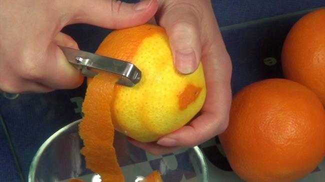 С помощью ножа или овощечистки апельсиновую цедру можно нарезать тонкими полосками и добавлять в салаты или смузи.