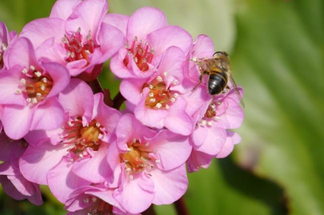 Как видно на фото, цветоносы у бадана толстолистного мощные, высотой 15-60 см, несут метельчатые соцветия довольно крупных, красивых, розовых, колокольчатых цветков.