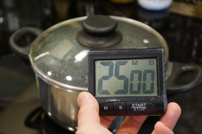 Turn the heat off, put the lid on and let it sit for 25 minutes.