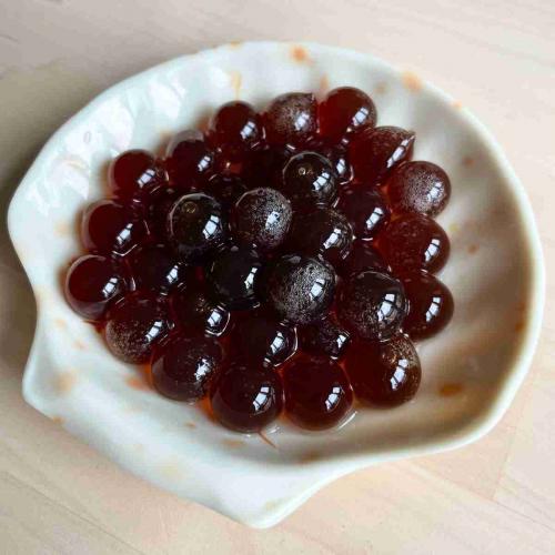 Tapioca pearl or balls, also known as boba are edible small chewy balls made from tapioca starch. Made from simple ingredients, tapioca, black food colouring, sugar and water, It is made into the size of small marbles with a texture of a gummy bear but a tad softer with the physical appearance of a jelly.