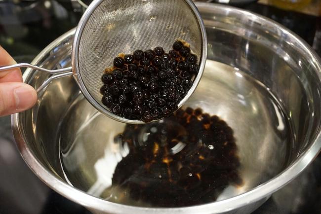 Drain the hot water and cool tapioca pearls in a cold water bath.