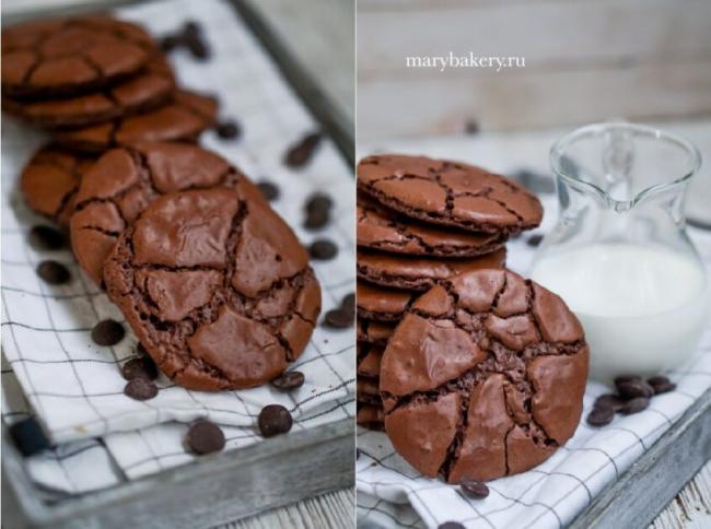 Это печенье мне очень нравится во многом потому, что он на основе шоколада, а не какао. У него очень насыщенный шоколадный аромат и вкус. Так же это печенье очень напоминает любимый многими десерт брауни. Как раз засчет тонкой корочки и насыщенной шоколадной, с небольшой тянучкой текстурой. Да и принцип приготовления очень похож: сначала растопить шоколад с маслом, затем добавить остальные ингредиенты.