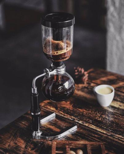 Сифон — самый древний из альтернативных способов заваривания. Устройство, похожее на сифон, изобрела некая мадам Васьё в 1841 году. Но из-за хрупкости стекла тогда кофеварка не стала популярной. Как и в случае с харио, этот метод очень любят в Японии. Сифон по способу приготовления похож на кофеварку мока. Эта гейзерная кофеварка, похожая на химическую колбу, состоит из двух частей: нижний сосуд наливают горячую воду, в верхний засыпают кофе среднего помола. Когда сифон нагревается от газовой или спиртовой горелки, вода по законам физики поднимается в верхнюю колбу с кофе и заваривает его. Пожалуй, сифон еще и самый зрелищный способ заваривания. Время приготовления 5-7 минут.