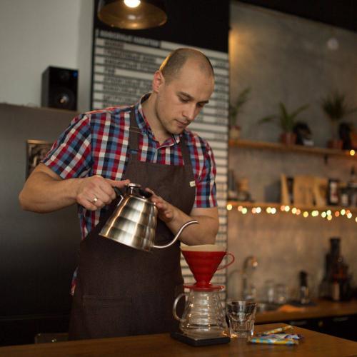 «Летом 2015 года мы впервые ввели в меню чистый колд брю на Эфиопии Суке Куто Хани. К сожалению, не все гости поняли чистый колд брю, поэтому часто он просто отлёживался на витрине. Спустя две недели мы списывали его по сроку годности. Скорее всего, гости просто были не готовы к чистому чёрному кофе. Капучино, латте, раф были лидерами продаж, альтернативу заказывало меньше 5% гостей, а фильтр-кофе мы тогда ещё не ввели. Поэтому мы решили изменить рецептуру и стали добавлять добавки в чистый колд брю — соусы собственного приготовления, которые подчёркивали дескрипторы зерна. Например, если в Кении АА Хайлендс Нат был ярко выраженный дескриптор ананас, то мы добавляли соус из ананаса, чтобы подчеркнуть его». |
