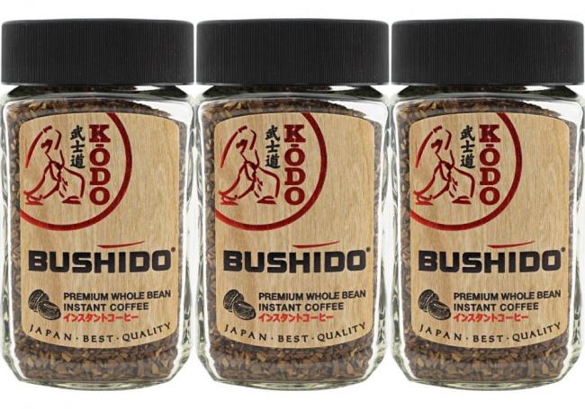 Бушидо – это современный кофе в удобной упаковке с иероглифами на этикетке. Различают натуральные зерновые, молотые продукты и сублимированные варианты, схожие по вкусовым качествам с напитком, сваренным в турке. Также встречаются товары с золотом, изготовленные под воздействием древесного дыма.