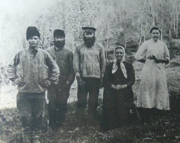 Иуда Кошман с женой (в центре) и работниками. Солохаул, ок. 1910. Фото: https://wiki2.org/ru/