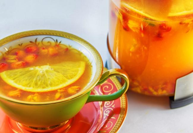 Чай с облепихой, апельсином и специями