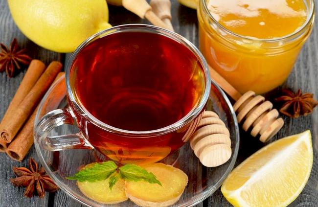 Сначала имбирь и перец заливают стаканом воды и кипятят 5 минут, чтобы они отдали полезные вещества в жидкость. Затем быстро процеживают, заливают полученным отваром заварку, накрывают крышкой и оставляют на 3-5 минут. Когда чай приобретет комфортную для питья температуру, в него добавляют мед и выжимают лимонный сок.