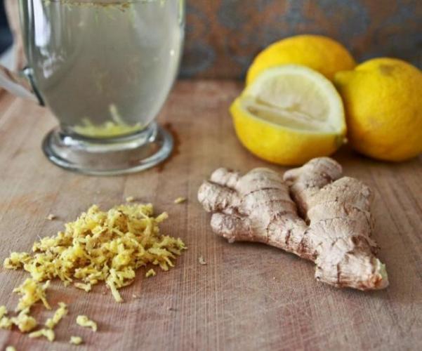 - Добавьте 0,5 ч.л. тертого корня и выдавите сок половинки цитруса;