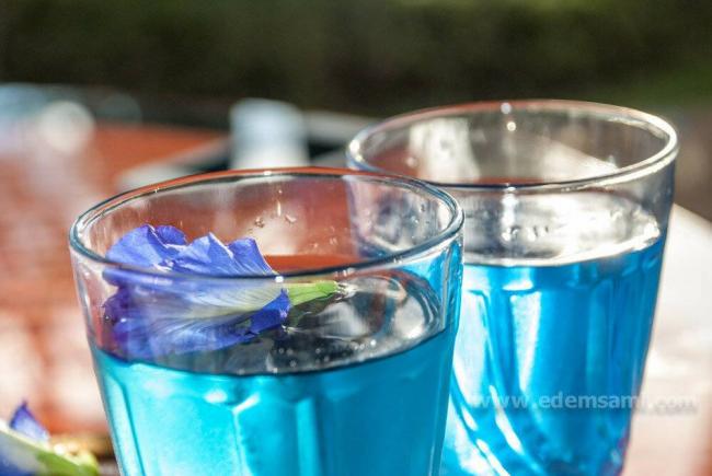Чем хорош синий чай? Сразу вряд ли вы проникнитесь его вкусом. Отдает сушеным горохом, на цвет – ярко-синий, что уже внушает опасение. Но на самом деле, если приноровиться с количеством бутончиков для заварки, а также добавлять лимон и мед по вкусу – от лимона чай станет приятного фиолетового цвета, – то даже и вкусно.