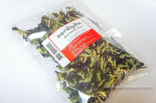 Анчан – это синий чай. Можно погуглить – клитория тройчатая. Растение семейства бобовых с ярко-синими цветами, которые, собственно, и заваривают. Синий чай испокон веков впаривали русским туристам в туристических аптеках по не особо обоснованной цене. Варианты по нормальной цене предлагаются в Макро или на развалах у Теско – 30-50 батов за пакетик 50 г – хватает его надолго. Также видела и в Фудмарте на Таппарйе, и в Паттайя Бьюти на Южной улице.