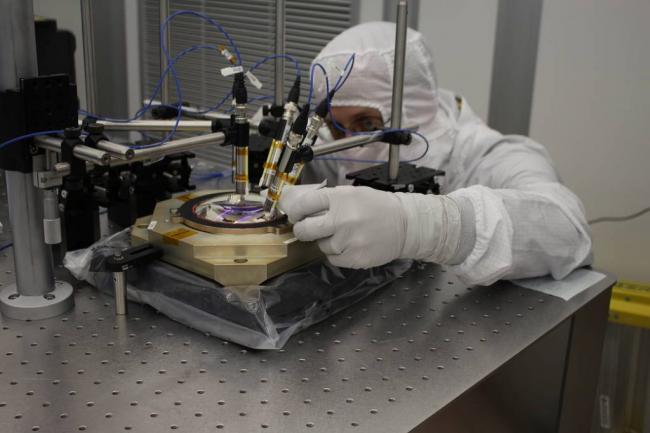 Специалист по оптике Грег Балонек готовит к полетам объектив TESS для модального тестирования в лаборатории MIT Lincoln