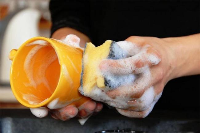 Чашки можно чистить жесткой стороной кухонной губки, но многие опытные хозяйки советуют мыть посуду меламиновыми губками, которые никогда не повредят тончайшее покрытие на кружке.