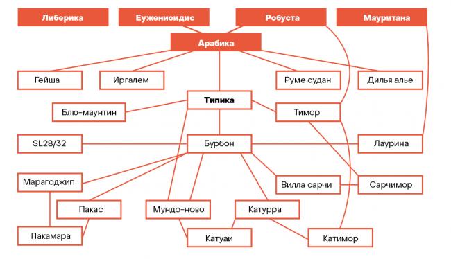 Карта происхождения сортов арабики