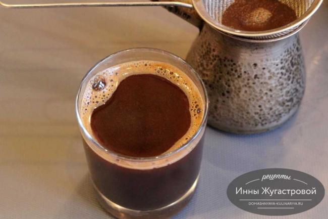 Повторяем цикл “закипания” трижды. После чего даем готовому напитку отстояться пару минут. За это время кофейная гуща осядет на дно и кофе можно будет разлить по чашкам. Если вы не хотите ждать, просто добавьте в турку 2 ч. л. холодной воды. Результат будет такой же – напиток без гущи.
