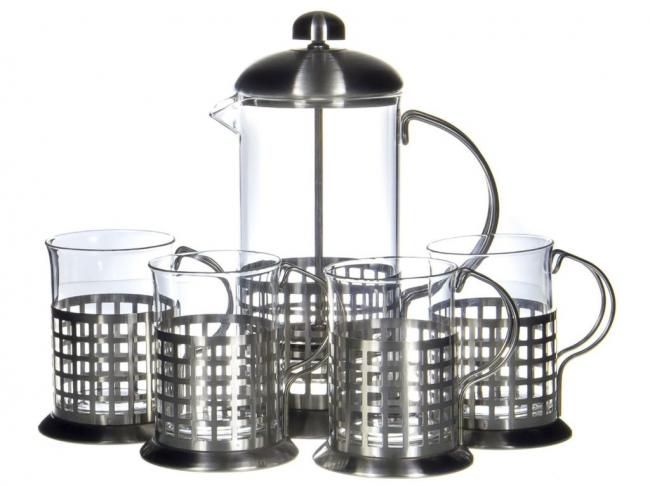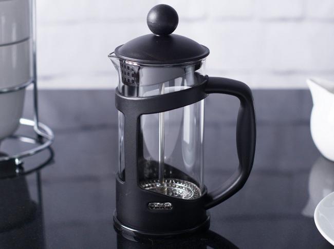Френч-пресс внешне представляет зауженный стакан с фильтром и крышкой. Пресс позволяет заварить кофе или чай методом настаивания, а сетчатый фильтр нужен для того, чтобы процедить полученный напиток.
