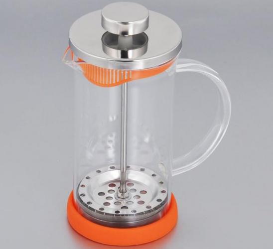 Модель со стеклянной колбой и стальным поршнем оснащена мелким ситечком. Позволяет приготовить крепкий и насыщенный кофе с минимальным количеством крупиц. Обладает прорезиненной ручкой и крышкой с возможностью отведения лишнего пара. Не впитывает запахов, приспособление легко мыть после применения.