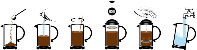 Главный плюс данного устройства — приготовить в нем напиток можно очень легко и быстро. Прибор устроен очень просто — он, как правило, состоит из стеклянной колбы и поршня-плунжера c металлической сеткой-ситечком. Внутрь колбы кладется молотый кофе или чайный лист, затем заливается горячая вода. Поршень внутри колбы служит для того, чтобы можно было легко и просто отделить кофейный жмых или чайную заварку от самого напитка.