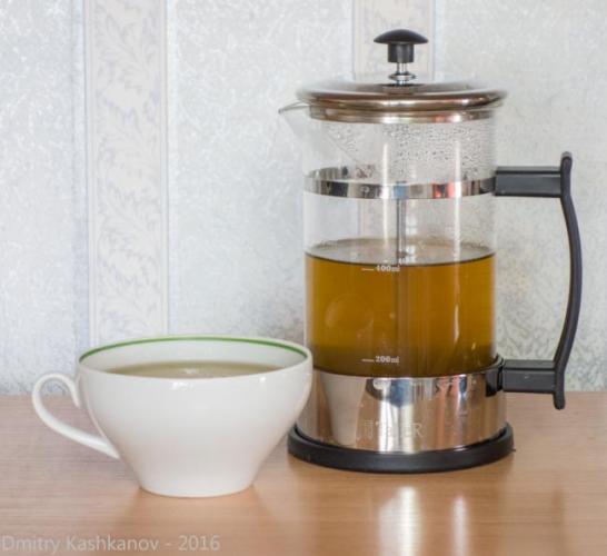 Обратите внимание – в нем нет ни одной чаинки. Все они прижаты поршнем ко дну колбы