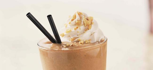 Все ингредиенты смешивают в блендере, миксере, шейкере, или, в крайнем случае, в обычной миске. После образования густой пенки напиток переливают в высокий прозрачный стакан, украшают топпингом и вставляют соломинку.