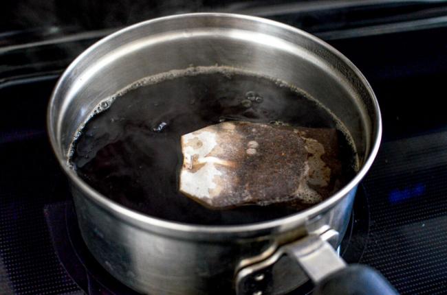 - Add 2 cups of water to a pot with 1 family size tea bag