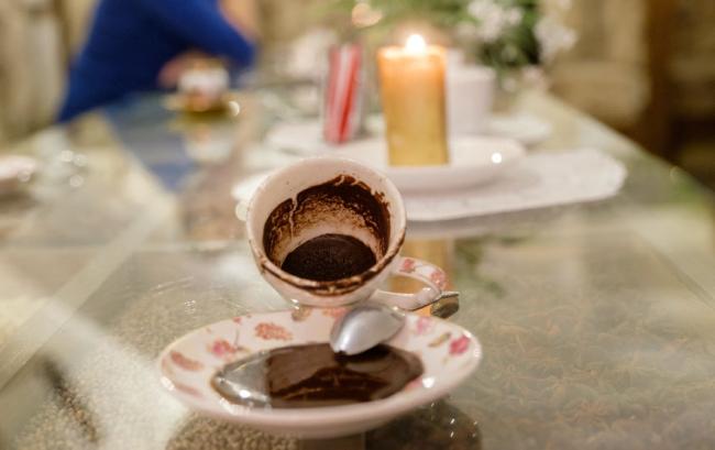 - снимают чашку и изучают кофейные узоры на ее стенках.