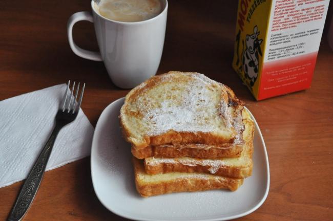Гренки – это поджаренный в яичном муссе хлеб. Масляная оболочка помогает ослабить воздействие на стенки кишечника, поэтому кофе так сильно слабить не будет. Тем, кто следит за фигурой можно заменить гренки тостом с небольшим кусочком сливочного масла.