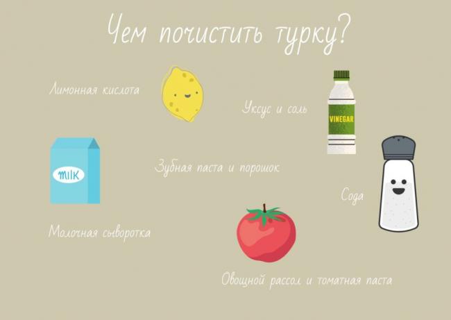 Для чистки турки не применяют агрессивную бытовую химию и грубые средства абразивного свойства. Категорически не рекомендуется также применять такие кислоты, как щавелевая или соляная.