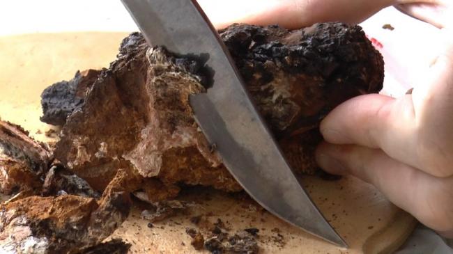 Внимание! После сбора с берёзы продукт твердеет, поэтому желательно сразу же порезать его на небольшие кусочки. В дальнейшем это действие облегчит обработку сырья