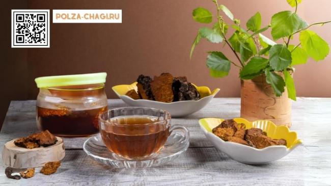 Для приготовления чая следует 1 часть измельченной чаги березы залить 5 частями горячей, около 80-90 градусов, кипяченой водой и дать настояться 2 часа, после чего отцедить. Для улучшения вкуса и повышения пользы хорошо бы добавить в чай мед и лимон. Некоторые также кладут в него измельченный корень имбиря.