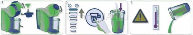 Простота в обращении позволяет производителю не писать длинные инструкции о том, как пользоваться капсульной кофемашиной. Достаточно наполнить резервуар водой, включить устройство в сеть и выбрать стаканчик с сортом напитка.