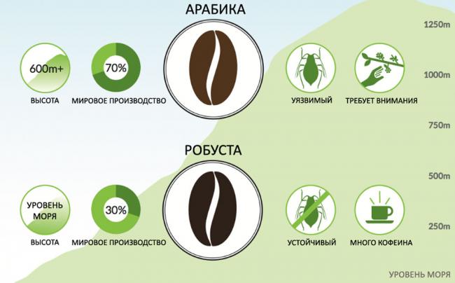 В качестве итога представим все различия робусты и арабики в формате таблицы: