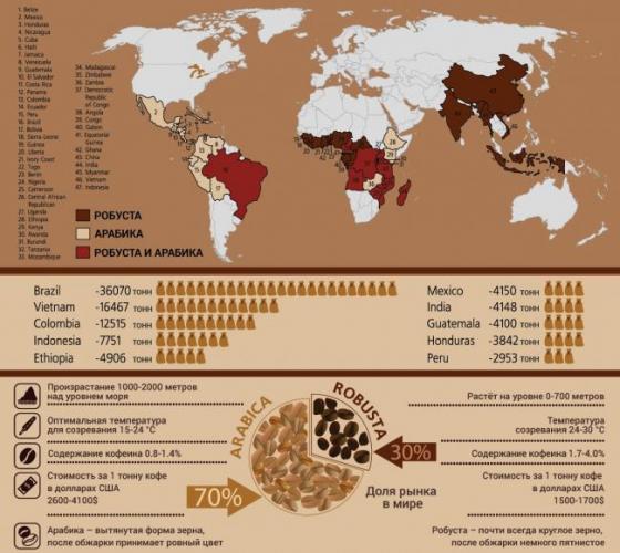Доля прочих сортов кофе настолько мала, что их можно не принимать во внимание