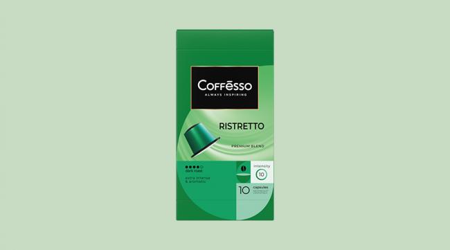 Ristretto (25 мл): молотый бленд арабики и робусты темной обжарки. Суперароматный кофе с нотками шоколада, орехов и цитрусов.