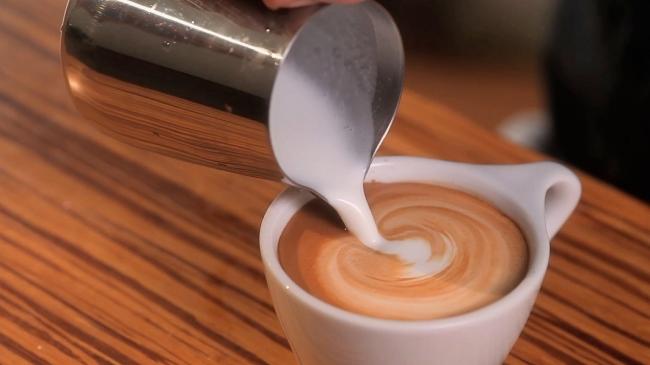 - Завершающим действием в приготовлении данного напитка является вливание вспененного молока в кофе. При помощи легких движений питчера, формируют на поверхности кофе различные фигуры.