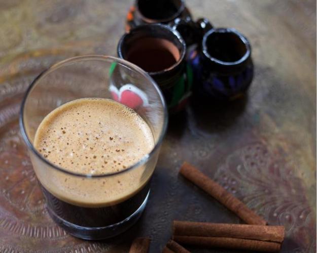 черный кофе – 100 мл; сгущенное молоко – 20 мл; молоко – 30 мл; бренди – 20 мл; корица – на кончике ножа; лимонная цедра – 5 г.