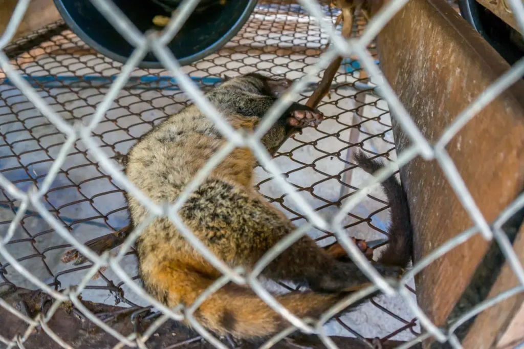 Мусанги — это ночные зверьки, не размножающиеся в неволе. Поэтому для поддержания и увеличения фермы идет отлов диких животных.