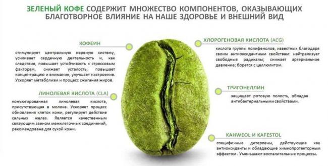 Необжаренные кофейные зерна изначально зеленого цвета. В них больше полезных веществ, чем в обжаренном, и меньше кофеина. Их можно заваривать, но вкус будет слегка травянистый, кисловато-горький. Зеленые зерна содержат хлорогеновую кислоту, которая может способствовать похудению: исследование.