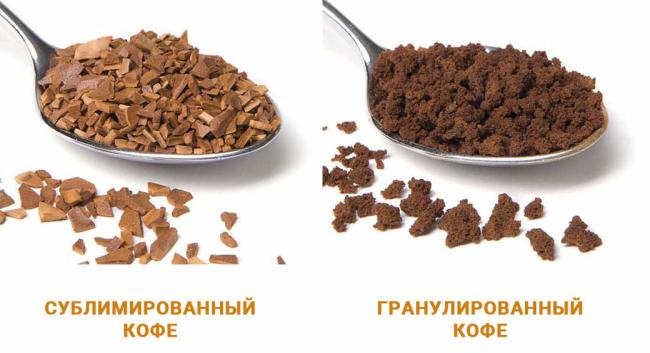 - Быстрорастворимый кофе. В процессе его изготовления извлекается много натуральных компонентов. Сырьем для гранул служит сорт «робуста», содержащий кофеина вдвое больше, чем «арабика». Дешевая «робуста» не только крепче, но и менее ароматная – чтобы усилить запах, производители сдабривают порошок искусственными ароматизаторами.