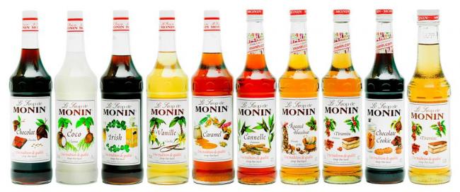 Monin. Французская компания, которая не так давно отметила собственный столетний юбилей. Известна огромным количеством наименований продукции. Не считая обыденных ванильных, шоколадных и фруктовых, в перечне можно отыскать сиропы со вкусом именитых ликеров, тропических фруктов и даже кокосового молока. Фасовка – литровые бутылки, цена – от 390 рублей. Ценник на некие экзотичные привкусы может доходить до 750 рублей.