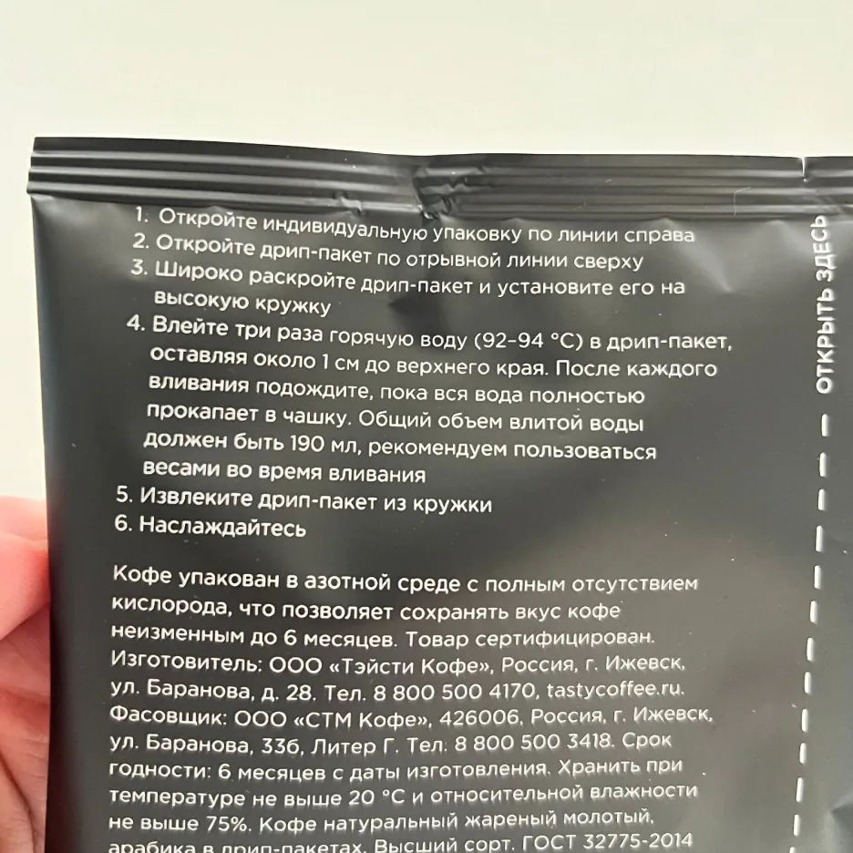Затем возьмите дрип-пакет и откройте его, сняв крышку.