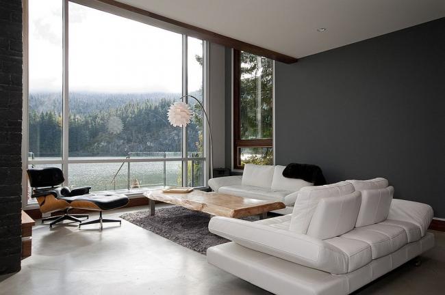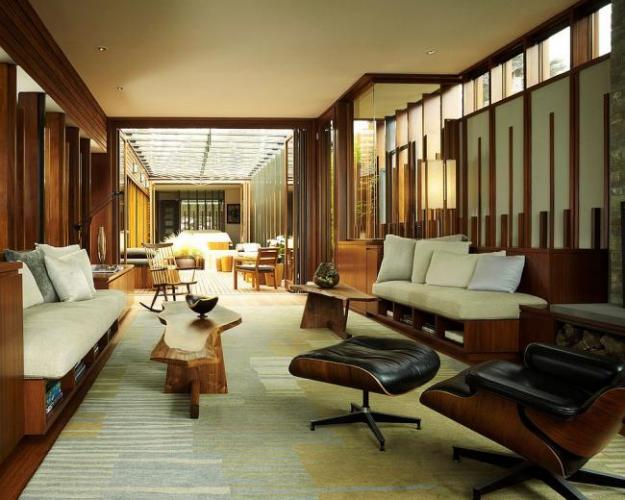 Spacious modern living room with two live edge coffee table [From: Dirk Denison Architects / David Matheson Photography]