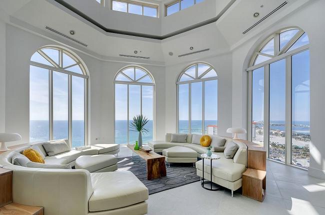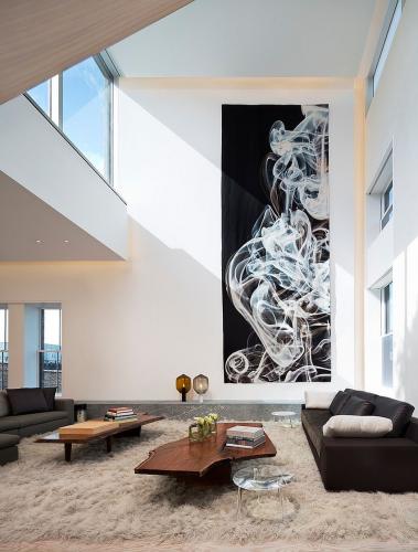 Contemporary living room in white live edge coffee table [Design: Workshop/APD]