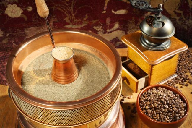 Кофе по-восточному знают по всему миру. Он прославился своим неповторимым вкусом, ароматом и скорость приготовления. По древним традициям кофе готовят в турке (желательно из меди) в горячем песке.