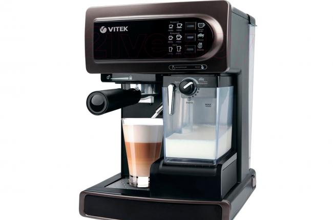 Рейтинг рожковых кофеварок 2019 был бы неполон без популярной модели отечественного производителя. VITEK VT-1514 с давлением в 15 бар быстро приготовит эспрессо, капучино или латте. Либо просто подаст горячую воду, заварит чай.